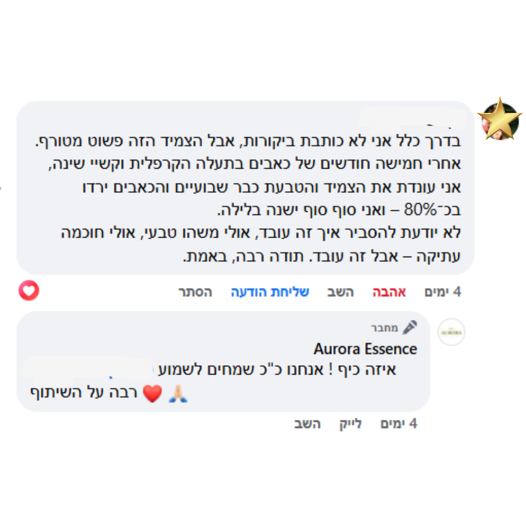 כמו בכל פתרון טבעי, אין תוצאה מובטחת מראש, אך רבים מדווחים על שינוי אמיתי והקלה מצטברת לאורך זמן 💛